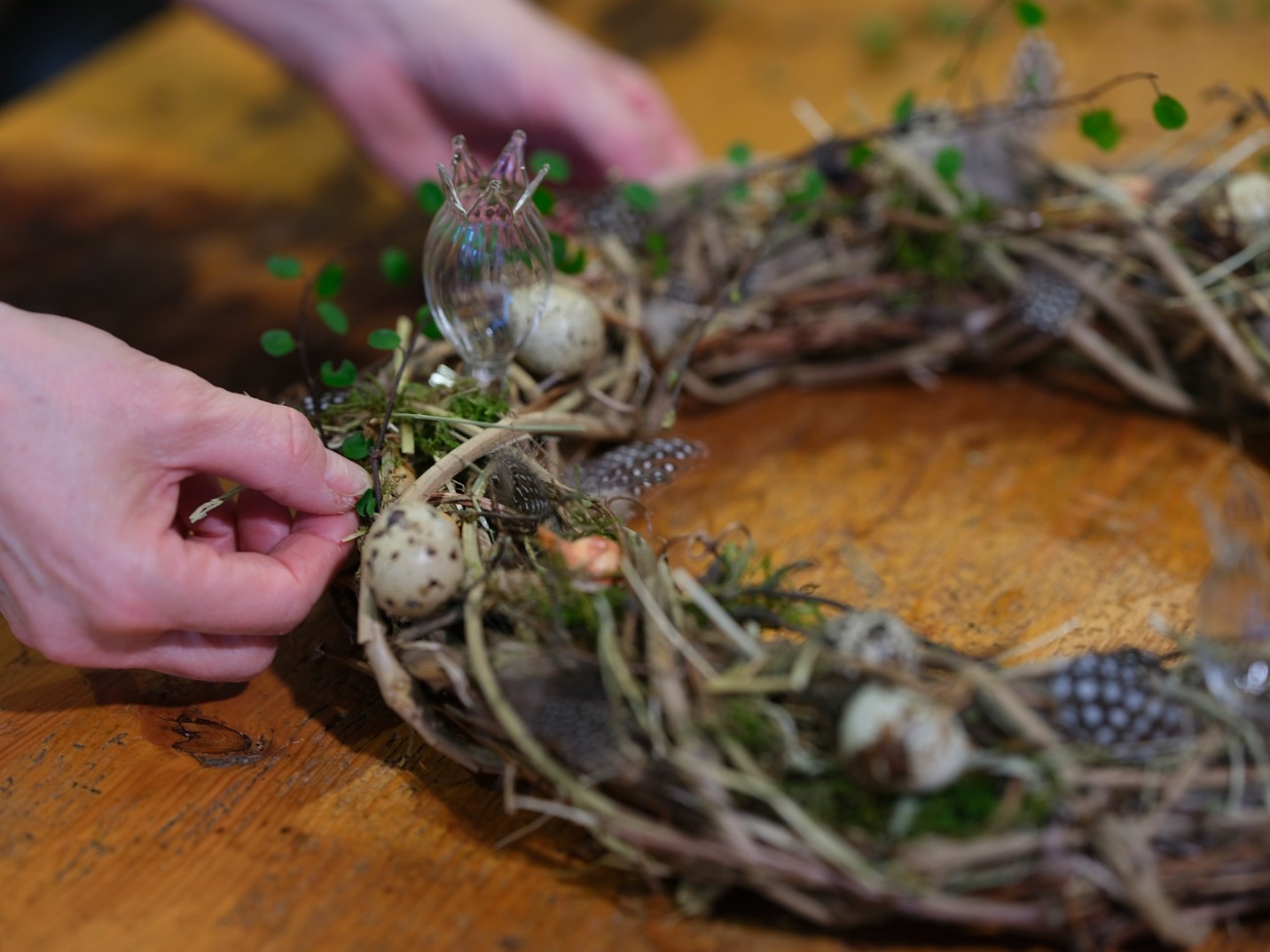 In meinem Kurs hast du die Möglichkeit, einen wunderschönen Nielenkranz und zwei kleine Osternästli zu dekorieren. Du kannst aus einer Vielzahl von Materialien wählen: Äste, Eier, Blumenzwiebeln und vieles mehr!